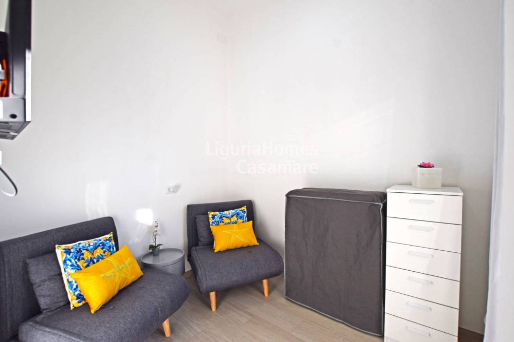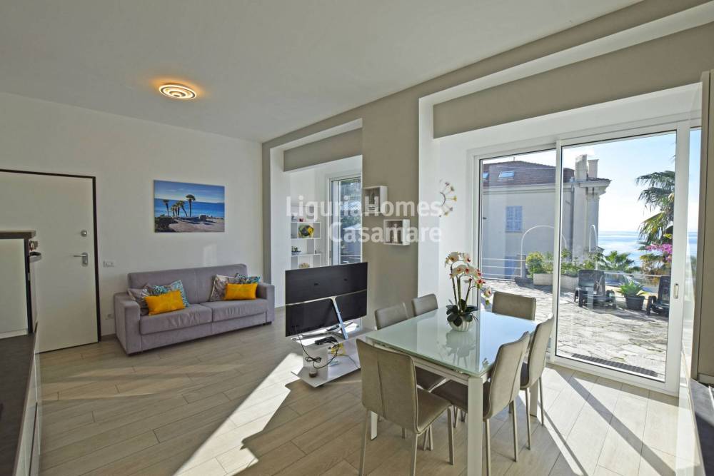 Lappartamento in vendita, completamente ristrutturato e finemente arredato, si distingue per ambienti curati e ben organizzati. La proprietà è composta da un luminoso soggiorno con cucina a vista, una camera matrimoniale con bagno en suite, una seconda camera e un ulteriore bagno. Lampio terrazzo rappresenta il vero valore aggiunto, offrendo una piacevole vista sul mare e sulla cittadina, perfetta per momenti di relax allaperto in ogni stagione. Posto auto.