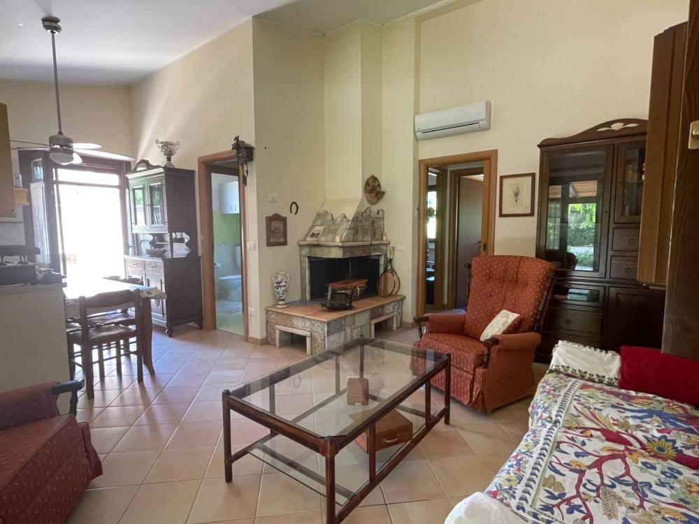 Allinterno troviamo una zona giorno con angolo cottura, due camere da letto, un bagno con doccia e un secondo bagno con lavanderia. La villa è molto luminosa grazie alla quadrupla esposizione ed è in ottime condizioni. Gli infissi sono in PVC con vetrocamera allesterno e in legno allinterno. Gli impianti sono a norma.