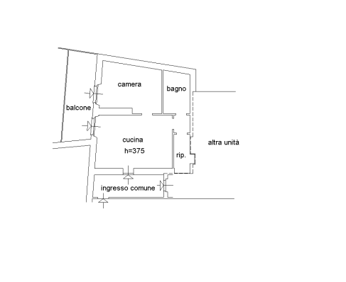 Unità al primo piano composta da: soggiorno, camera, disimpegno, bagno, ripostiglio e terrazzo.