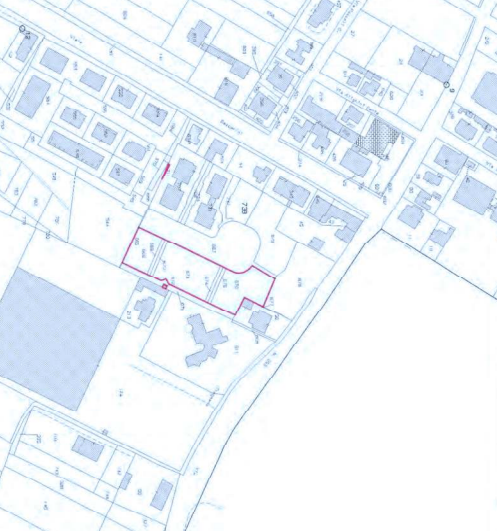 Nove terreni edificabili inseriti in un contesto già urbanizzato con la presenza di strade e marciapiedi.