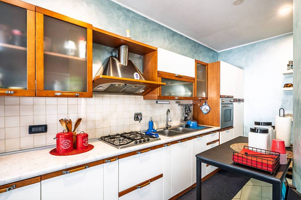 - appartamento di 163 mq. composto da salone doppio, cucina a vista, due ampie camere, bagno spazioso, cabina armadio, lavanderia. Ulteriore camera di 34 mq. al piano superiore, collegata all'appartamento da scala interna e dal vano scale. Possibilità di creare un ulteriore bagno al primo piano. Ampi balconi.