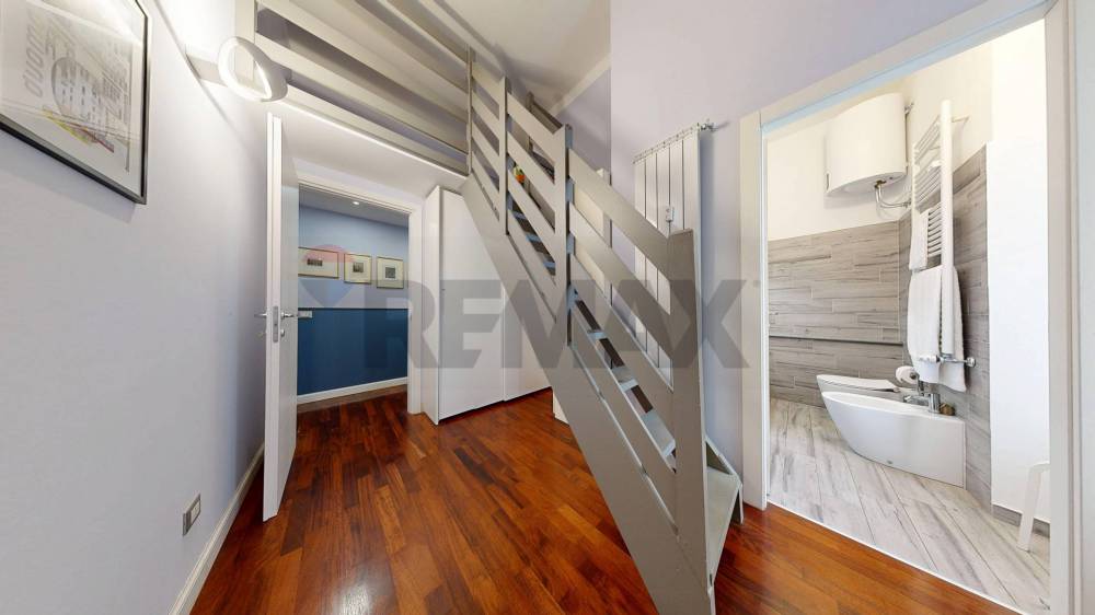 Limmobile presenta una distribuzione razionale e funzionale degli spazi ed è composto da ingresso, luminoso soggiorno con cucina a vista e arredi su misura, camera matrimoniale, camera singola, doppi servizi di cui uno en suite, due balconi e comodi ripostigli.