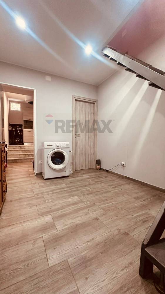 Ingresso su ampio salone e una camera matrimoniale sopra nel soppalco con una scala interna.