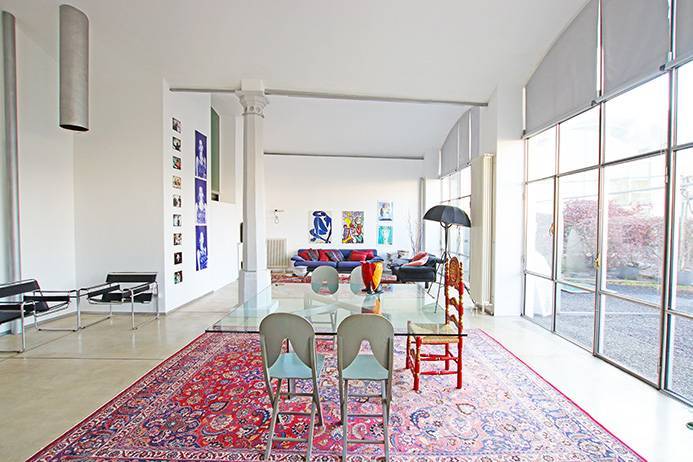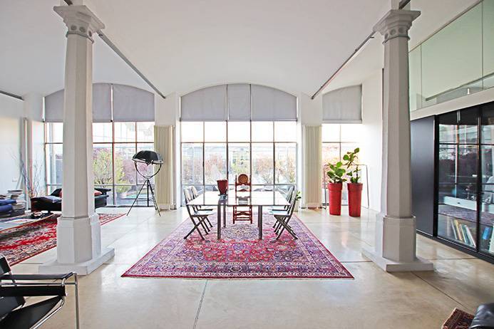 L'immobile è internamente composto da ingresso con accesso indipendente al piano primo tramite scala comune a sole 2 unità abitative, grande cucina open space, grande soggiorno di circa 80 mq con volte a doppia altezza ed enormi vetrate a tutta altezza con accesso alla terrazza pansile piantumata, ulteriore ambiente ad uso studio/zona letto con bagno e cabina armadio dalla quale è possibile accedere, tramite una scala interna, all'area soppalcata dove è presente una camera da letto con bagno aperta sullo studio sottostante ed un'ampia area guardaroba affacciata sulla cucina (è eventualmente possibile creare un accesso indipendente ai due soppalchi inserendo una seconda scala interna).