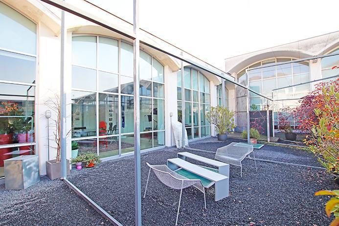 Contemporaneo Factory Loft di pregio architettonico di mq 200 dislocato su 2 livelli dotato di 65 mq di terrazza con giardino pensile, grande cantina e posto auto coperto.