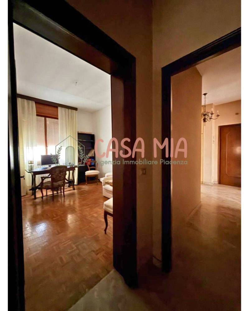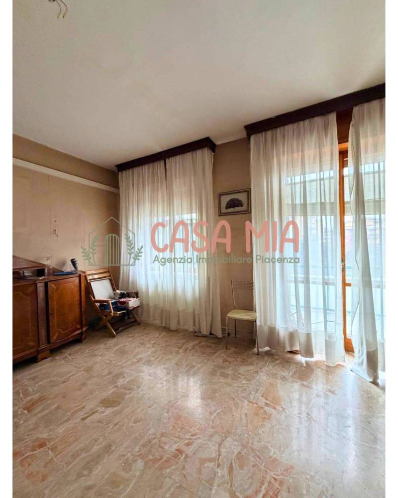 PIACENZA ZONA STADIO: Entrando nell'appartamento troviamo un ampio disimpegno dal quale si accede direttamente al soggiorno, ampio ed accogliente ,dotato di una grande finestra che si affaccia su una balconata con vista sul verde circostante, oltre a vano scala che collega ad una stanza adibita a mansarda.