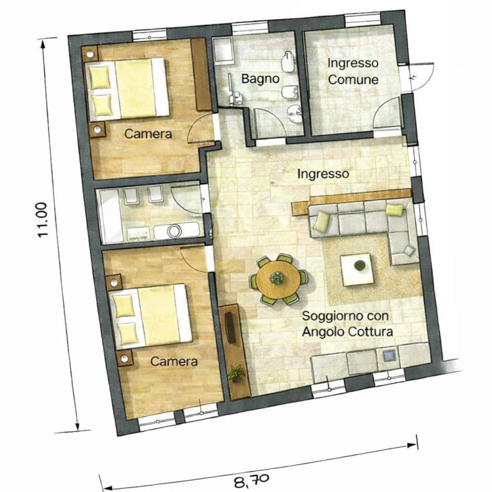Ogni ipotesi di modifica, ridistribuzione degli spazi e fattibilità degli interventi dovrà essere verificata e confermata da un tecnico abilitato (geometra/architetto) in base alle normative vigenti.