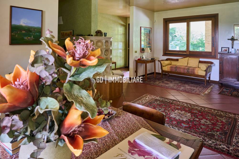 Trattasi di una casa accogliente, calda e decisamente particolare, che merita di essere vista dal vivo per apprezzarne ogni caratteristica. La cura delle finiture, unita all'accogliente STUBE che accoglie l'ospite, rendono questa abitazione decisamente particolare. Il piano terra è composto da un'ampia zona giorno con sala da pranzo e collegata ad una cucina separata ricca di elementi d'arredo che la rendono davvero allegra, raffinata e accogliente. Sempre al piano terra troviamo: due camere matrimoniale di circa 18 Mq servite da un bagno. Completano il piano un salotto relax e il bagno giorno. La sala da pranzo è collegata al grande portico, attrezzato di caminetto, dove diventa naturale trascorrere bei momenti immersi nella quiete e nella privacy, godendo di una bellissima vista aperta sulle colline circostanti. Bella e originale la scala in legno che porta alla zona mansarda suddivisa in due camere, studiosala lettura e un bagno privato. Non mancano , al piano seminterrato, ampia cantina, vano C.T con comodissima lavanderia e autorimessa. Una soluzione davvero elegante e prestigiosa, imperdibile per la zona!