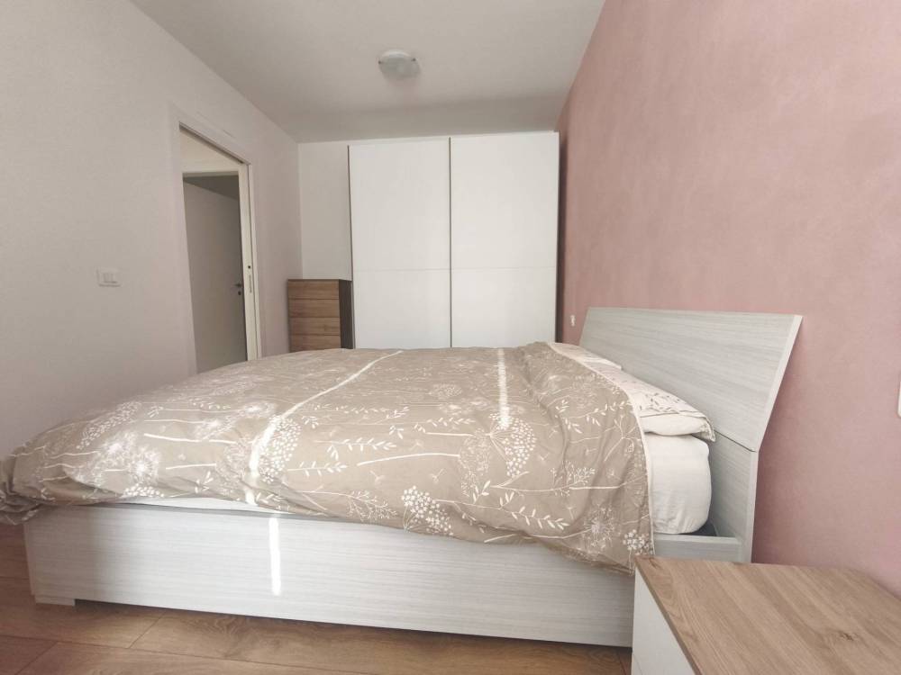 Un disimpegno conduce alla camera matrimoniale, ampia e luminosa, a un secondo locale versatile utilizzabile come cameretta, studio, guardaroba o cabina armadio, e al bagno con box doccia.