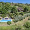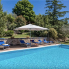 La proprietà ha un giardino circostante di circa 5000 mq, ricco di piante ad alto fusto di vario tipo che si estendono sulla vallata circostante, dei quali una parte di circa 500 mq è adibita a giardino, la restante parte si estende dolcemente su un terreno dalla morfologia collinare che, in piccole terrazzamenti, scende dall'abitazione verso la piscina. Un luogo affascinante, con alberi di alto fusto e superfici in prato e ghiaia attorno alla casa racchiuse da basse siepi che per nulla ostacolano lo spettacolare panorama circostante.