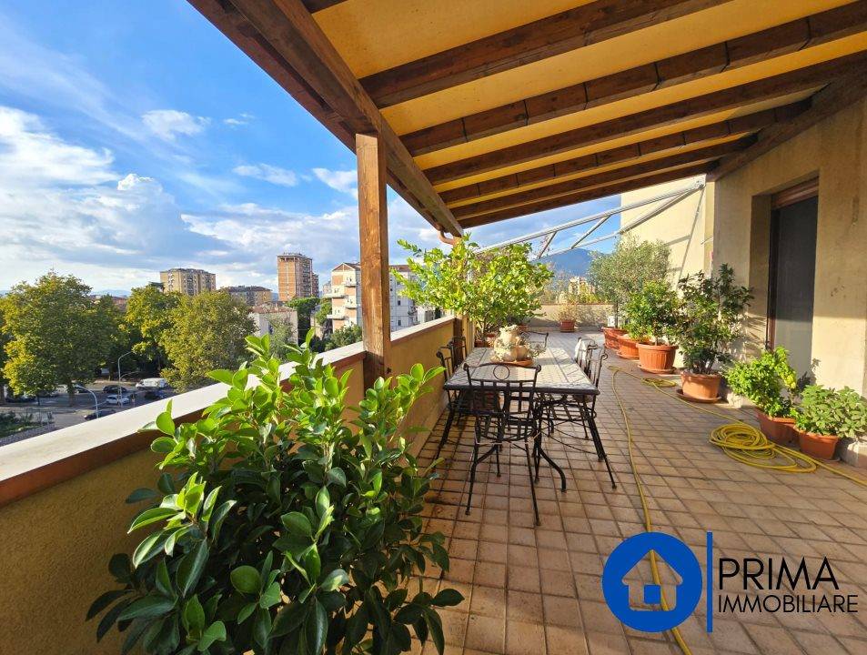 Particolare, coloratissimo e dalla grande personalità! Questo appartamento è unico in tutto e per tutto, dai dettagli unici e vivaci ai meravigliosi terrazzi panoramici.nL'appartamento che vi proponiamo si trova al piano medio di un palazzo edificato nei primi anni 2000, antisismico, termo autonomo e dotato di doppio ascensore.nEntriamo nella proprietà dal portoncino blindato e si apre davanti ai nostri occhi una bellissima zona giorno con grandi vetrate scorrevoli sulla destra e sulla sinistra che portano a due differenti terrazzi abitabili dalla straordinaria metratura rispettivamente affacciati ad est e a ovest, in uno dei quali è stata create una piccola sun room e una zona ombreggiata con tettoia dove poter mangiare all'aria aperta. nOltre ad un'ariosa zona living dove rilassarsi e vedere film e mangiare con gli amici troviamo una moderna cucina con penisola anch'essa con porta finestra al terrazzo.nLa zona notte rimane sapientemente divisa dalla zona giorno grazie ad un disimpegno al quale si accede da una particolare porta in vetro murano scorrevole, qui troviamo 3 camere da letto matrimoniali e due bagni, entrambi con finestra e con doccia. nL'immobile è stato totalmente ristrutturato 10 anni fa ca., troviamo split per l'aria condizionata in tutta l'abitazione, un pavimento moderno effetto legno omogeneo in tutta la casa, eleganti porte a filo muro dai colori intensi e i bagni totalmente rinnovati co rivestimenti e sanitari dal taglio contemporaneo.nLa proprietà è completa di cantina e posto auto condominiale.nL'immobile è perfetto per famiglie che stanno cercando una soluzione dal carattere deciso, che offra spazi ampi da vivere, dove accogliere familiari e amici e divertirsi sui grandi terrazzi.nLa zona è comoda per raggiungere il centro in pochi minuti, i servizi sono vicini come poste, tabaccheria, rosticceria, supermercato e fermate dell'autobus.nContattaci e fissa una visita, una casa così non si trova tutti i giorni!n - Maggiori Dettagli: Porta blindata, Videocitofono, Cantina