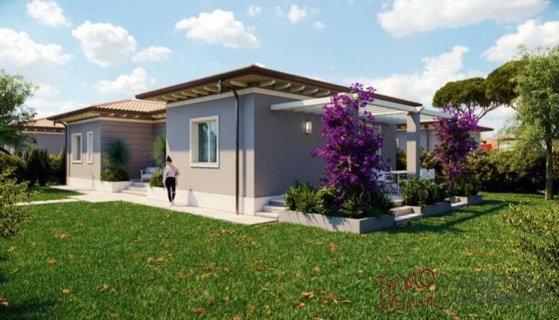 Imminente realizzazione di villa unifamiliare indipendente sviluppata al solo piano terra con giardino esclusivo su 4 lati. Cancello carrabile e pedonale; rifiniture di pregio; pavimenti in parquet, gres o ceramica continua; riscaldamento a pavimento; impianto solare; predisposizione aria condizionata ed impianto di allarme. Posti auto e giardino in proprietà. Classe energetica and quot;A and quot;. Inizio lavori settembre 2024 e consegna prevista dicembre 2025/marzo 2026. - Maggiori Dettagli: Porta blindata, Cassaforte, Videosorveglianza