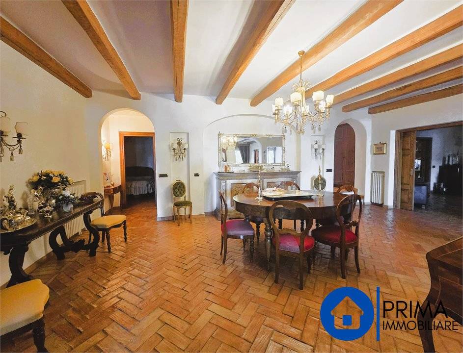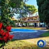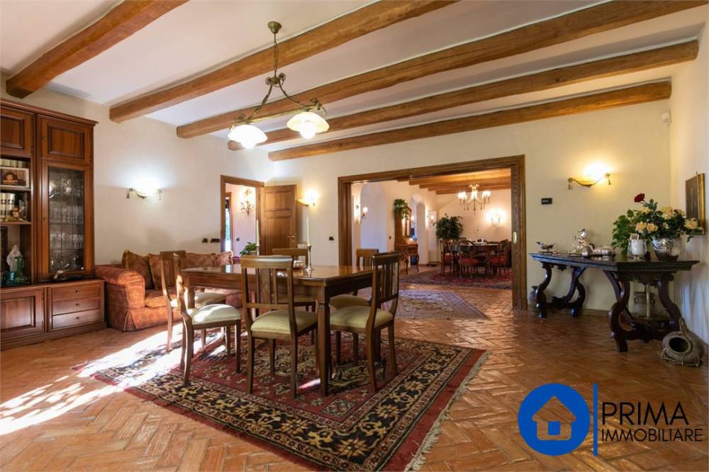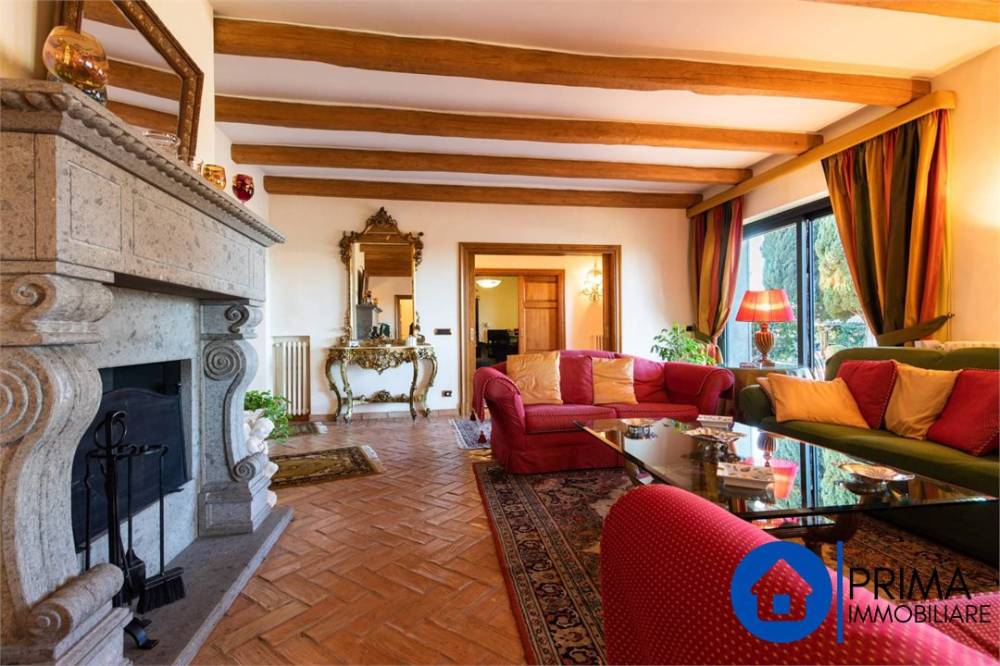 Maestosa, elegante, dal gusto raffinato, classico e tipicamente italiano... oggi vi proponiamo una soluzione immobiliare splendida che offre comfort, una vista mozzafiato e tanto spazio da vivere con familiari e amici.nParliamo di una villa indipendente, totalmente rinnovata nei primi anni 2000, tra Frascati e Monte Porzio Catone. Ricca di fascino, abbracciata da un curato parco privato di 6000mq con alberi secolari, piscina e campo sportivo.nAccediamo alla proprietà dal cancello carrabile verso un viale in porfido arricchito da maestosi alberi sempre verdi, da qui si apre la visuale verso l'imponente villa che si sviluppa su due livelli; al piano terra dall'ingresso proseguiamo verso la zona giorno, composta da un salone doppio con camino e grandi vetrate con affaccio verso la piscina. Allo stesso piano troviamo una sala da pranzo, una rustica cucina in muratura con forno a legna, una camera con bagno en-suite pensata per gli ospiti, il vano lavanderia e un bagno. Questa piano è perfetto per vivere la famiglia, per fare feste con gli amici e ricevimenti per gli eventi importanti della vita.nAl piano superiore possiamo accedere internamente con le scale o dall'esterno dal cortile in porfido che circonda l'abitazione. Anche qui abbiamo a disposizione una cucina in muratura e un salone con camino dove le numerose e ampie vetrate inondano le stanze di luce e fanno da cornice al paesaggio mozzafiato. Dalle vetrate scorrevoli accediamo al terrazzo abitabile panoramico da dove si gode di una vista non solo sul parco e sulla piscina ma anche sulla and quot;città eterna and quot;.nProseguendo nella zona notte troviamo due camere matrimoniali con soppalco, due bagni con finestra e box doccia e la camera padronale dotata di bagno en-suite e di accessoriata cabina armadio, con mobilio di pregio su misura.nLa proprietà continua con la dépendance, ideale per gli ospiti o per il personale di servizio, è costituita da una zona giorno con cucina a vista, una camera matrimoniale e il bagno. Di fianco abbiamo una spaziosa zona hobby, circa 250mq peretta per feste al coperto anche nelle stagioni invernali, per rilassarsi e giocare, un luogo che i bambini e i ragazzi ameranno. nCompleta la proprietà la piscina, il campo sportivo da tennis e da calcio, la rimessa per le auto e il forno esterno.nLa villa è ricca di dettagli e materiali di pregio come le porte e gli infissi in legno massello, i camini dal gusto storico, le scale in legno dei soppalchi, il marmo bianco e verde del bagno ... e tanto altro che potrai scoprire con i tuoi occhi. Per altre informazioni o per fissare una visita contattaci!n - Maggiori Dettagli: Camino, Porta blindata, Cantina, Videocitofono, Predisposizione aria condizionata, Predisposizione allarme