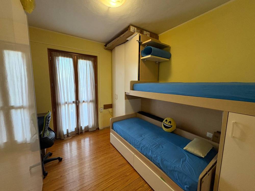 La zona notte offre una camera matrimoniale con accesso al balcone e splendida vista sulla Presolana, una seconda camera con uscita su un terzo balcone e un bagno finestrato con doccia.