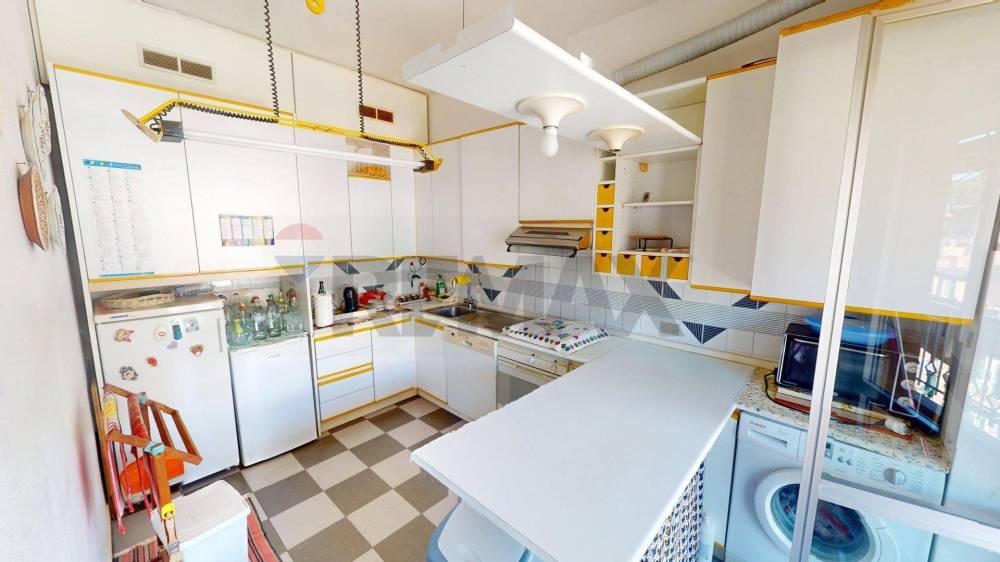 Ampia zona giorno con accesso, insieme alla cucina, a un balcone vivibile affacciato su contesto aperto e silenzioso