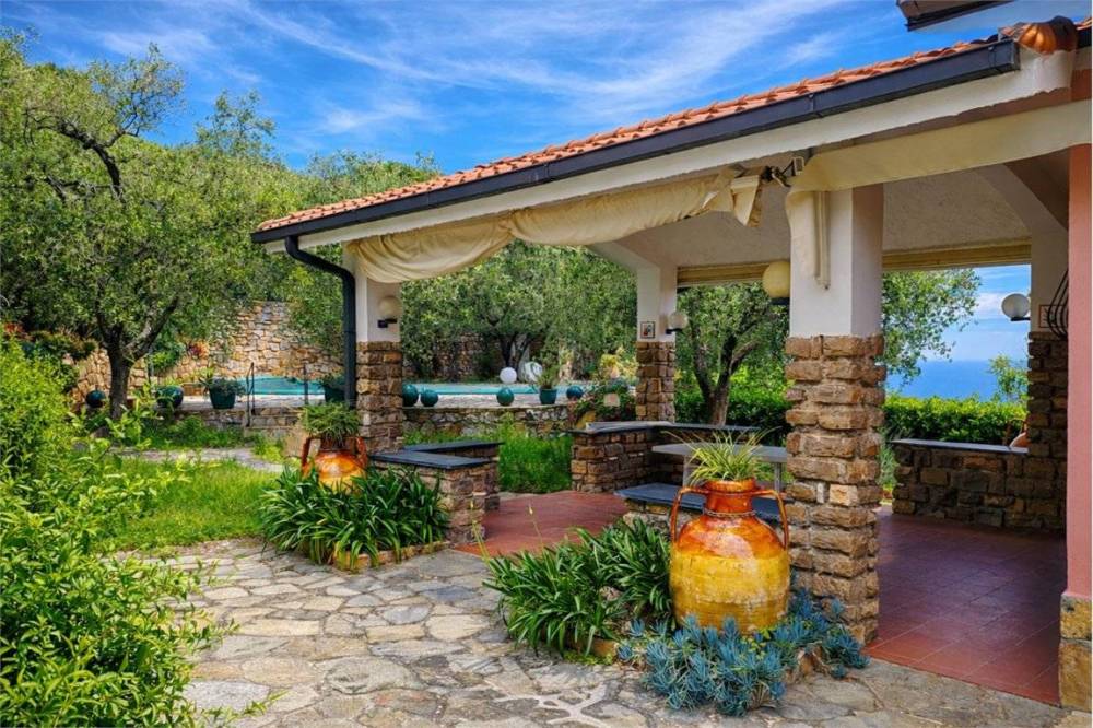 A Cervo, zona collinare via al Castellaretto, Riviera Immobiliare propone in vendita bella villa con piscina, esposta sud est, libera su quattro lati, splendida vista mare, giardino privato con ampia superficie di circa 1000 mq. con numerose piante da frutta, agrumi, ulivi, fichi. Nel terreno vicino all'ingresso è possibile parcheggiare almeno due auto in posti scoperti. La casa è disposta su di un unico piano con libero accesso ai disabili. La proprietà è dotata di due accessi; da quello principale, con cancello elettrico, si arriva alla villa percorrendo un breve vialetto con bella macchia mediterranea, dall'ingresso secondario, si raggiunge la casa attraversando il giardino costeggiando la piscina. La villa ha una superficie di 89 mq, dispone di 3 camere da letto dotate di cabina armadi, 2 bagni, un angolo cottura con piccola sala da pranzo e soggiorno. Tutte le stanze sono dotate di infissi con doppi vetri e zanzariere. Un ampio porticato dotato di tende frangisole, garantisce un'ottima fruibilità di questa abitazione nell'arco di tutte le stagioni, che insieme alla presenza di aree sia soleggiate che all'ombra degli alberi del giardino privato, rendono il soggiorno veramente idilliaco. Nel giardino è presente anche un locale magazzino da destinare anche a ricovero di piccoli mezzi di trasporto quali motocicli e biciclette. La villa è stata concepita per un utilizzo prevalentemente estivo ma con alcuni accorgimenti può facilmente diventare un bellissimo "buen retiro" per tutte le occasioni ed anche per residenza.