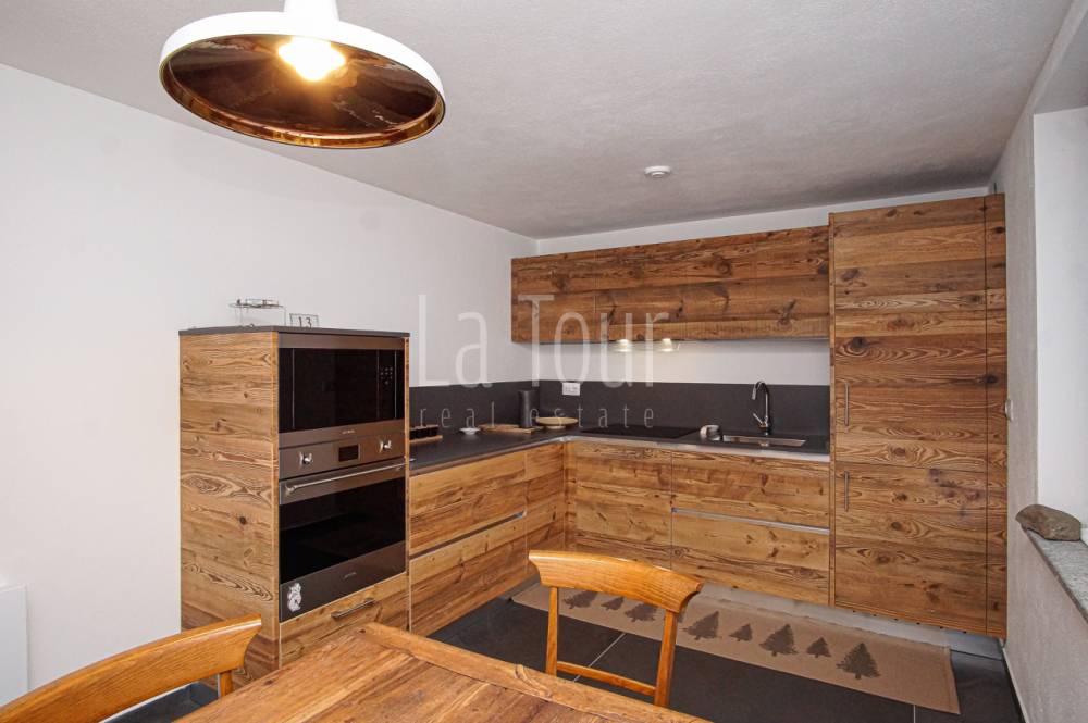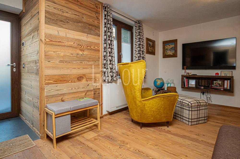 In centro paese, in posizione molto comoda (car free) in prossimità di tutti i servizi e delle piste da sci alpino e nordico, caratteristico villino indipendente, libero su tre lati, totalmente ristrutturato e riqualificato in classe A2, con consumi energetici molto ridotti. L'abitazione, completamente arredata, si sviluppa su due piani per i quali la distribuzione degli spazi è stata progettata per offrire il massimo confort, comprendendo inoltre un vano cantina interrato e un'ampia soffitta dotata di finestra e velux e con possibilità di collegamento diretto al vano scala interno, per realizzare un ulteriore vano fruibile. Al piano terreno, oltre ad un piccolo disimpegno di ingresso si trovano l'accogliente salotto, una spaziosa cucina abitabile arredata con mobilio di qualità, moderno ma dal carattere montano, ed un bagno finestrato di 6 mq.; al piano superiore, collegato da una scala circolare in metallo di design, vi sono due camere da letto matrimoniali rispettivamente di 14 e 16 mq., oltre al secondo bagno (anche questo con finestra) ed al balcone orientato a sud-est. L'impianto di riscaldamento, di nuova generazione (pompa di calore), dispone del sistema di controllo da remoto, molto utile per la gestione a distanza della caldaia. La proprietà comprende un vano tecnico con accesso diretto dall'esterno, ed una corte adiacente di ca. 30 mq. collegata alla via pubblica, sulla quale è possibile parcheggiare due auto in colonna.