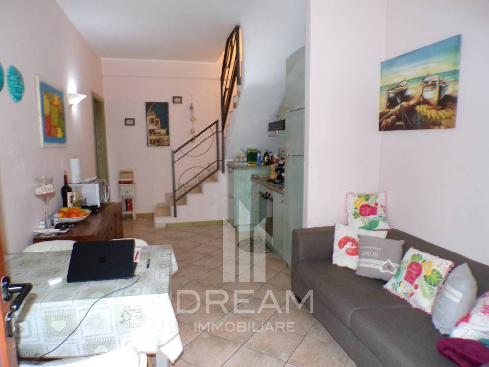 La residenza al piano terra è composta da soggiorno pranzo con angolo cottura, antibagno e bagno, una scala interna collega al piano primo dove si sviluppa la zona notte con camera da letto matrimoniale, camera da letto doppia, due balconi.