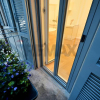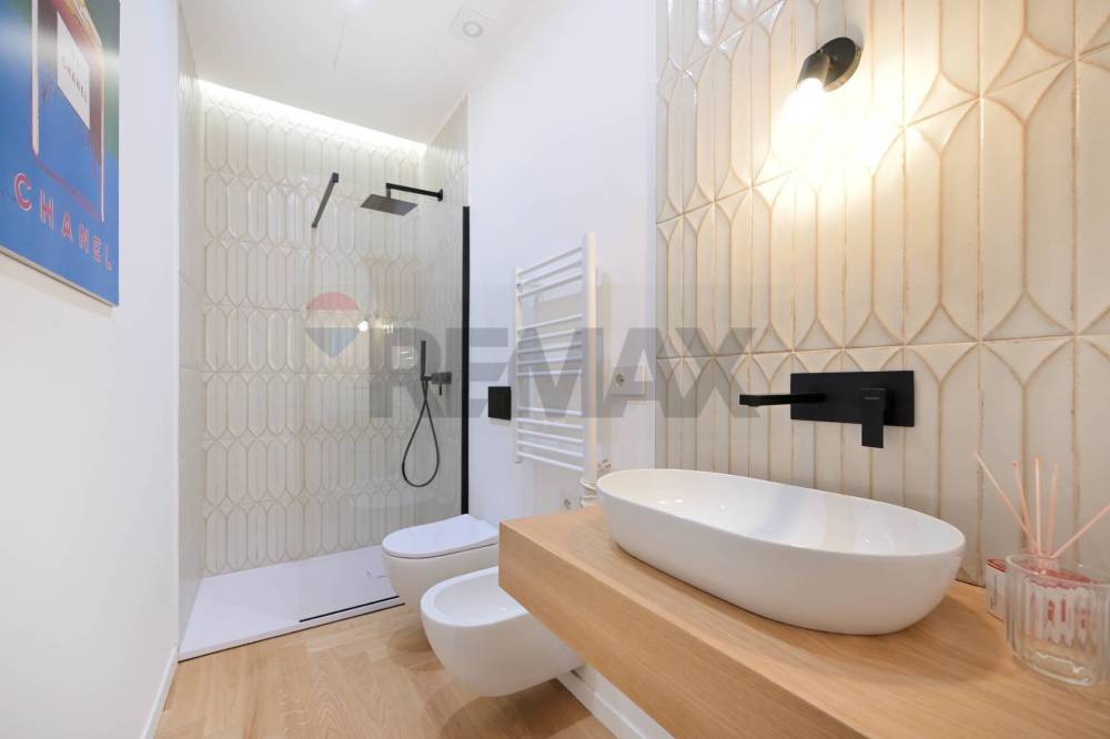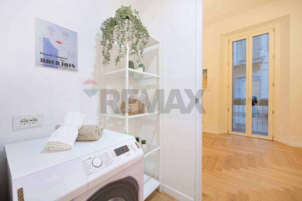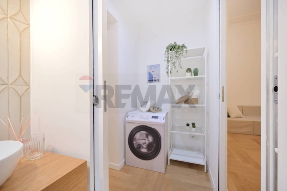 L’ingresso accoglie con un pratico guardaroba su misura e l’accesso al ripostiglio in quota. L'ampia zona giorno, particolarmente luminosa e affacciata sul silenzioso interno, gode di tre ampie aperture che conducono al balcone. La cucina a vista con zona pranzo crea un ambiente conviviale, ideale per vivere e intrattenere. Un disimpegno conduce al primo bagno completo, rifinito con materiali di alto livello, e alla colonna lavanderia integrata. La spaziosa camera matrimoniale ospita un grande armadio a parete e dispone di un bagno en suite finestrato, completo di ampia doccia walk-in e illuminazione scenografica a led. Grazie alla pianta flessibile, è possibile ricavare un piccolo trilocale. L’intero appartamento è stato oggetto di una ristrutturazione integrale: impianti elettrico e idraulico nuovi, parquet in rovere chiaro posato a spina di pesce, controsoffitti con faretti incassati e dettagli decorativi.