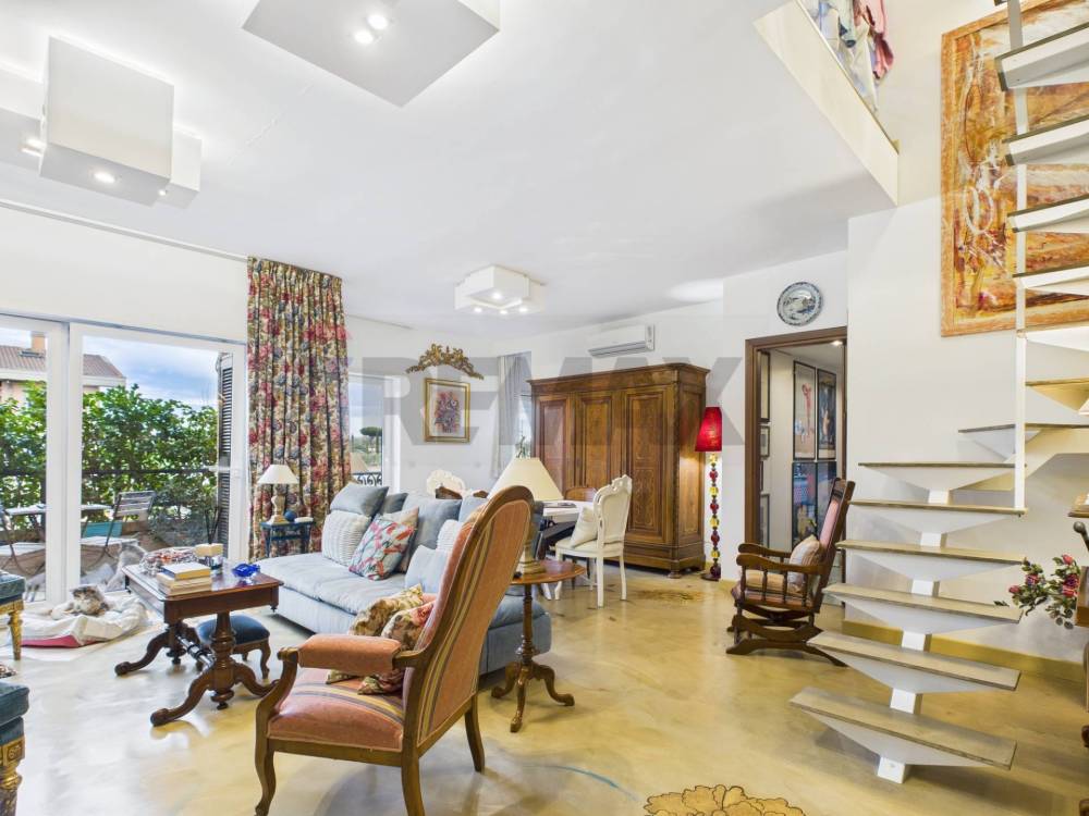 ENTRANDO CI ACCOGLIE UN AMPIO SOGGIORNO, SUDDIVISO IN ZONA LIVING E ZONA PRANZO, CON GRANDE VETRATA CHE PERMETTE L'ACCESSO AL PRIMO BALCONE. A COMPLETARE L'AMBIENTE, UNA SCALA INTERNA MODERNA E DI DESIGN CHE COLLEGA CON ELEGANZA I DUE LIVELLI DELL'ABITAZIONE. DAL SOGGIORNO SI ACCEDE DIRETTAMENTE ALLA CUCINA, FUNZIONALE E PROGETTATA PER GARANTIRE PRATICITÀ E CONFORT, E AL CORRIDOIO, DOTATO DI ARMADIATURE A MURO, CHE CONDUCE ALLA ZONA NOTTE COMPOSTA DA CAMERA DA LETTO MATRIMONIALE, CON ACCESSO ALL'ALTRO BALCONE, E DAL BAGNO CON VASCA