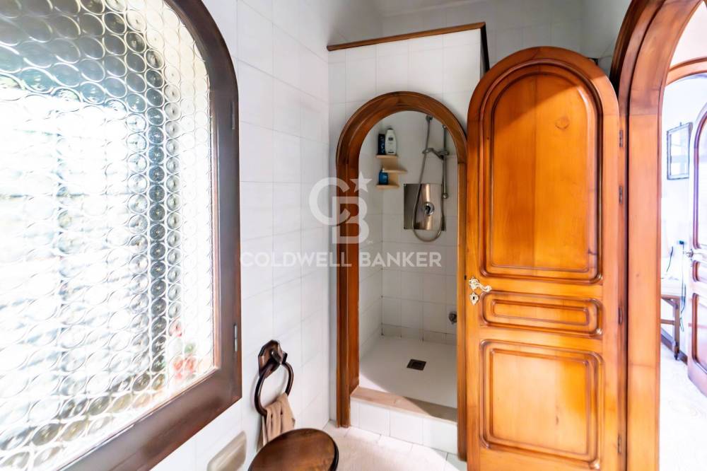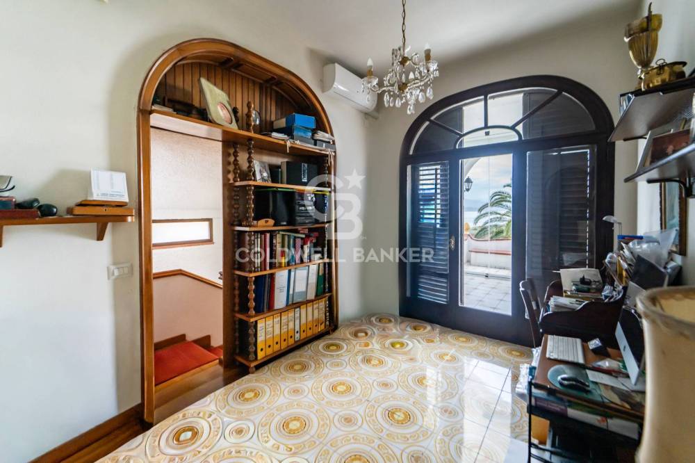 La porzione in vendita comprende il piano inferiore, affacciato sul giardino privato e dotato di un proprio accesso al mare, ed una parte del piano superiore.