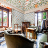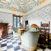 ALL' INTERNO TROVIAMO UNO SCENOGRAFICO SALONE PER I RICEVIMENTI UN SALOTTO CON CAMINO FUNZIONANTE, E' CARATTERIZZATO DA SOFFITTI MOLTO ALTI FINEMENTE DECORATI, IL PAVIMENTO E' IN MARMO COL TOZZETTO E LE SCALE IN ARDESIA.
