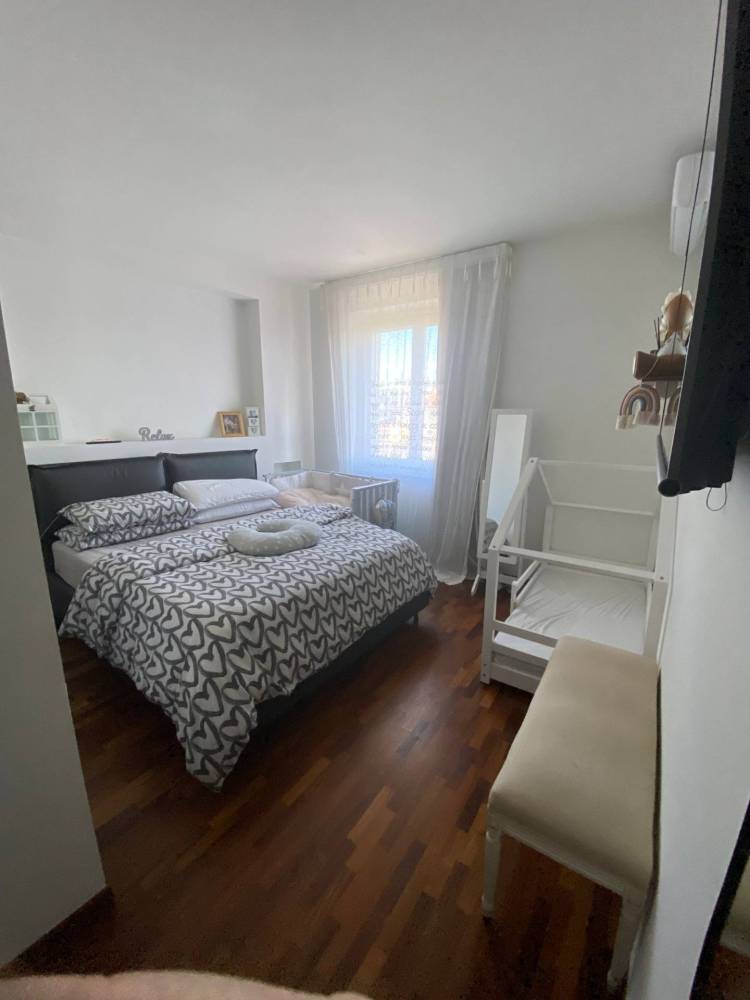 Ampio e luminoso soggiorno/pranzo con cucina a vista, corridoio, due camere matrimoniali di cui una con cabina armadio (possibilità di realizzare secondo bagno) ;