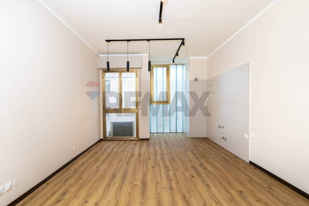 E' composto da corridoio con guardaroba, soggiorno con la cucina open space, camera matrimoniale e bagno completo con vasca.