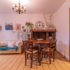 Tramite scalinata interna si accede alla zona giorno composta da una cucina e un ampio soggiorno con camino rifinito in pietra.
