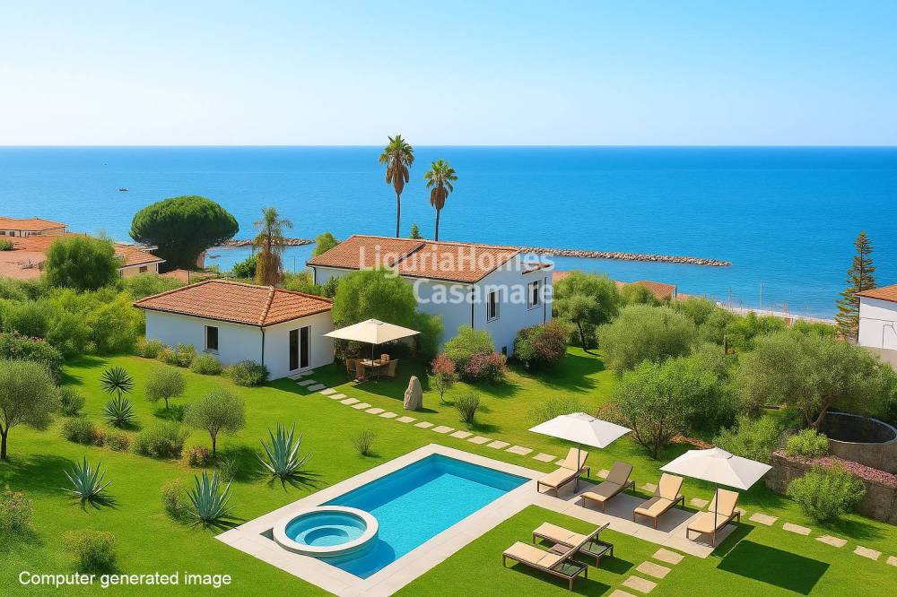 Santo Stefano al mare, a soli 200 metri dalle spiagge di sabbia finissima, da tutti i ristoranti e i negozietti del borgo, in posizione centralissima, ma tranquilla, vendita di villa con grande terreno e vista mare sensazionale.