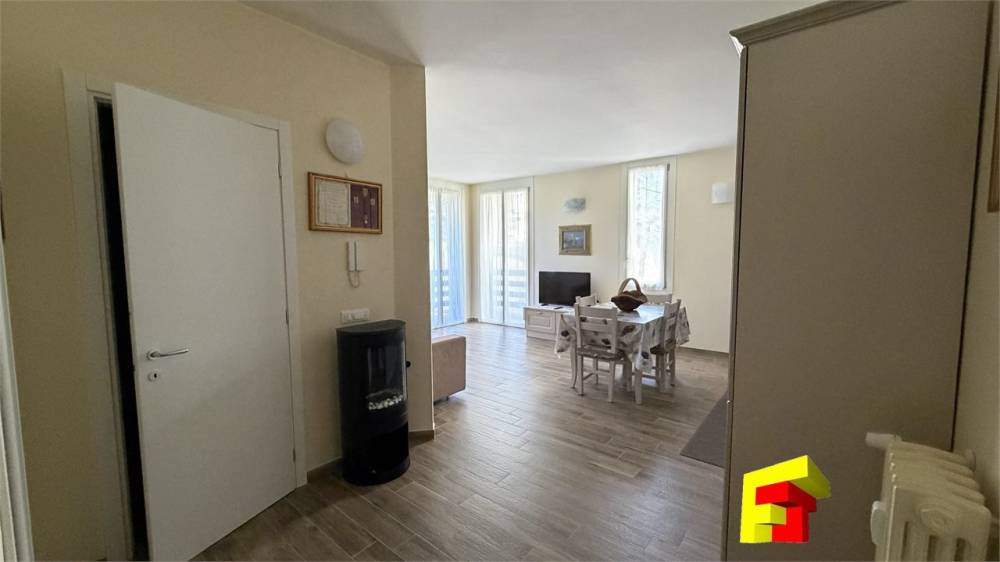 Bilocale interamente ristrutturato a nuovo, di 65 mq, dotato di balcone e ampie finestrature, situato in contesto condominiale e posto al piano terzo di palazzina nei pressi del centro del paese e a pochi passi dal centro sportivo.nAppartamento costituito da ingresso, ampio e luminoso soggiorno con cucina a vista, divano letto matrimoniale, n. 2 portefinestre per accesso al balcone, bagno finestrato dotato di doccia, sanitari a terra,e lavatrice, camera matrimoniale di ampia metratura che consentirebbe anche il posizionamento di un letto a castello oltre al letto matrimoniale già presente.nL'appartamento viene venduto interamente arredato a nuovo così come visionato in foto, dotato inoltre di caminetto a bioetanolo che non necessita di canna fumaria, riscalda leggermente l'ambiente e crea atmosfera.nL'appartamento è disponibile per il rogito a partire da giugno 2026. - Maggiori Dettagli: Porta blindata