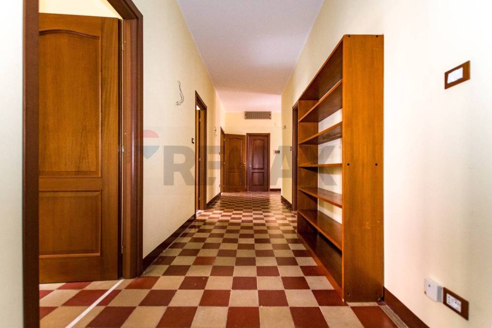 La distribuzione interna comprende: ampio ingresso, salone/soggiorno, tre grandi camere (di cui una con wc annesso), cucina abitabile, secondo wc, lavanderia e ripostiglio.