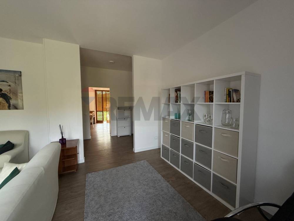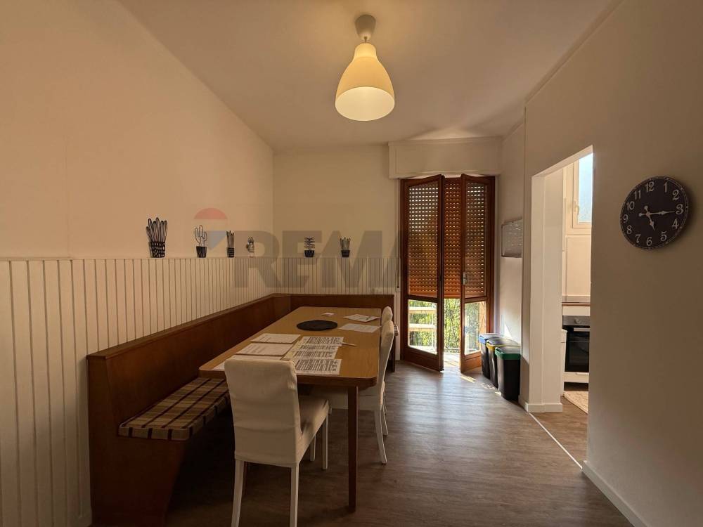 L'appartamento è composto di ingresso, cucinotto, sala da pranzo, soggiorno, due bagni, quattro camere, balcone dalla zona giorno e ampio e attrezzato giardino condominiale.