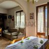 L'ambiente living si presenta in un'unica composizione open space, dove soggiorno e cucina dialogano attraverso un elegante arco in muratura.