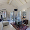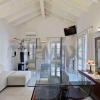 L’ingresso si apre su un disimpegno funzionale che organizza in modo razionale gli ambienti. Da un lato si accede alla zona notte, composta da una camera matrimoniale luminosa e ben proporzionata, illuminata dalle grandi velux, dotata di cabina armadio, e da un bagno finestrato con doccia, rifinito con materiali sobri e attuali. Dall’ingresso, tramite pochi gradini, si raggiunge invece la zona giorno, posta leggermente su un livello superiore: un ambiente ampio e molto luminoso, valorizzato dalle altezze generose, che ospita una zona relax, una zona pranzo e una cucina a vista moderna, completa di elettrodomestici e arredi contemporanei. Questo spazio risulta particolarmente piacevole e ben vivibile grazie alla luce naturale e alla continuità visiva dei volumi.