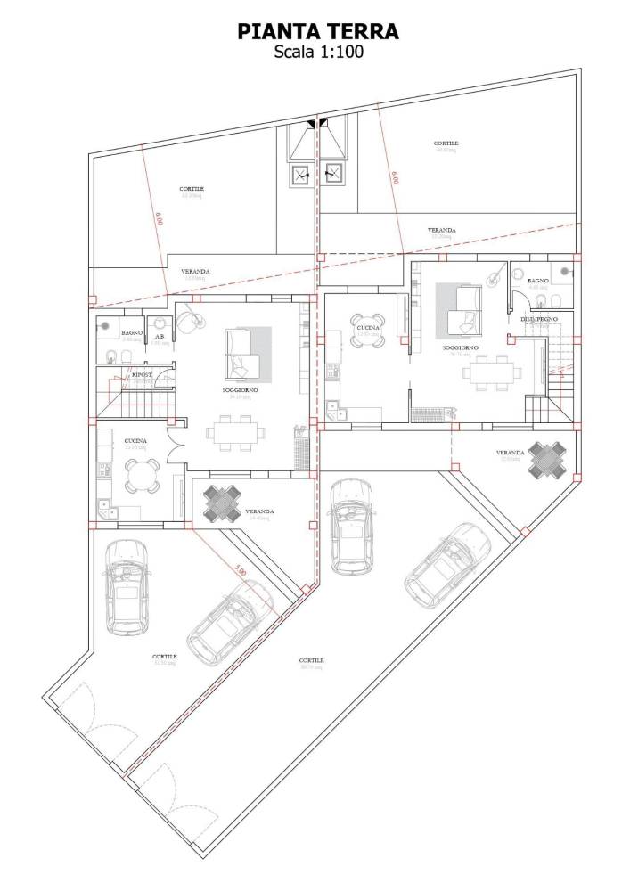 Piano terra: un ampio soggiorno, una cucina abitabile, un bagno, ripostiglio e verande;