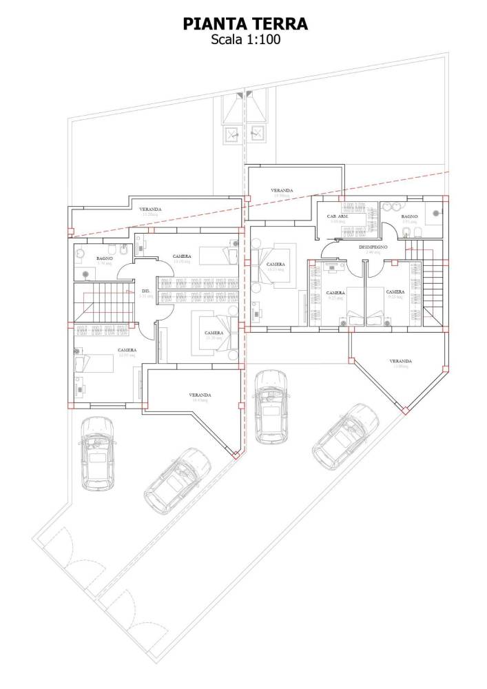 Piano primo: due camere singole, una camera matrimoniale con bagno privato e cabina armadio, un ulteriore bagno privato e due ampie verande.