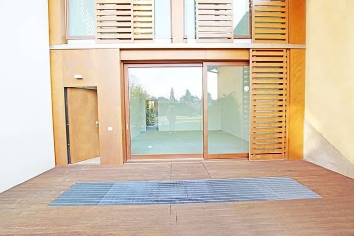 Al piano terreno ingresso indipendente con grande terrazza in teak fronte giardino, ampio soggiorno con enorme porta finestra scorrevole con accesso al giardino, cucina abitabile con accesso al giardino dotata di disimpegno e bagno ospiti.