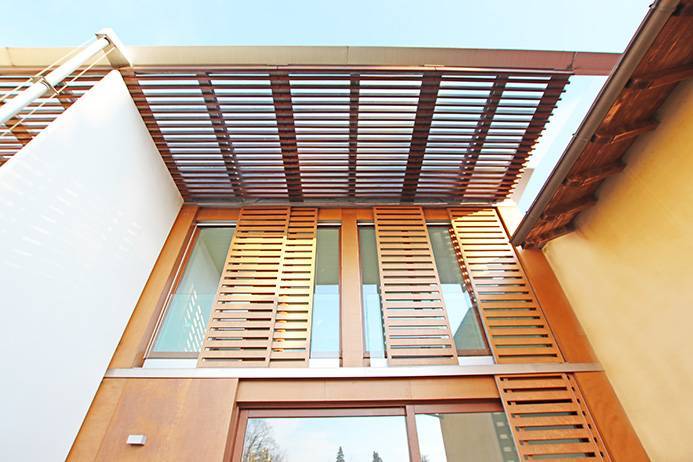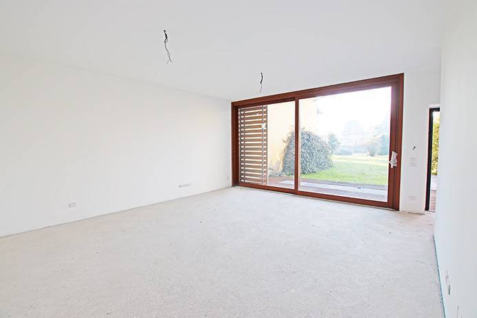 Prestigiosa e moderna porzione indipendente di mq 150 dotata di mq 50 di terrazza solarium al piano superiore, 44 mq di giardino esclusivo e mq 114 di spazio al piano interrato internamente collegato tramite scala interna e comprensivo di grande autorimessa tripla in larghezza.