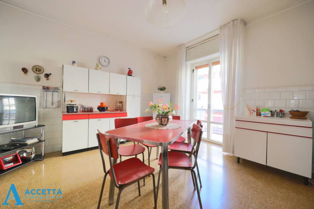 Proponiamo in vendita a Taranto, presso Via Elio angolo Via Cagliari, un luminoso appartamento di comode dimensioni. Ubicato al quarto piano, all'interno di stabile sprovvisto di ascensore, l'appartamento è composto da un accogliente ingresso, due spaziose e versatili stanze, un'ampia cucina pranzo, un bagno con tramezzo ed un vano studio/pluriuso, completano la proprietà due balconi esterni, di cui uno con affaccio su Via Siracusa ed uno con affaccio su Via Elio. Situato in servitissima zona della città, a portata di attività commerciali e servizi di ogni genere, l'abitazione presenta comodi spazi, ottima luminosità ed è dotata inoltre di impianto di riscaldamento autonomo ed un climatizzatore (funzionamento non verificabile), zanzariere, infissi in alluminio vetro/singolo e porta blindata, il tutto in buono stato manutentivo.