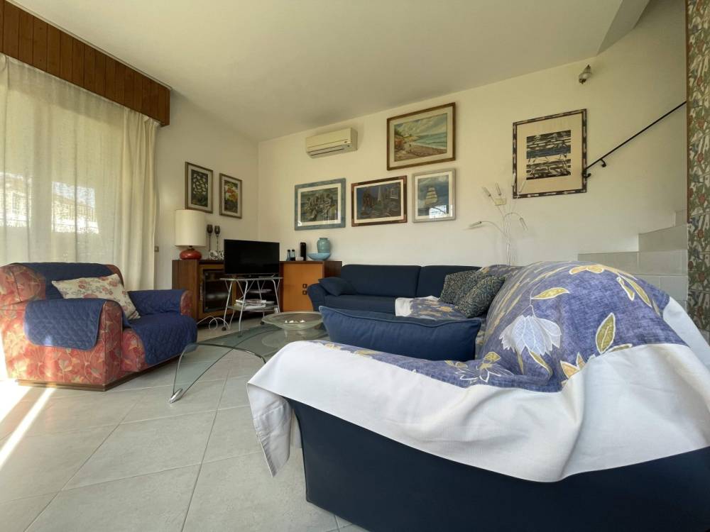 Marina di Pietrasanta – Tonfano, 1,100 meters from the sea, semi-detached villa arranged over two levels. Ground floor: living/dining room, kitchenette, bathroom, and one small bedroom with bunk beds. First floor: two double bedrooms, one small bedroom, and one bathroom. Garden on two sides. Air conditioning.