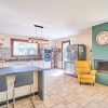 Due grandi vetrate ci permettono di poter ammirare la bellezza del giardino dallinterno della casa, anche in inverno, come se fosse un complemento darredo: la piacevole sensazione di spaziosità della zona giorno abbinata alla resa dellesposizione del sole e alla vista del verde di certo infonde quella gradevole sensazione di benessere che ci mette perfettamente a nostro agio, con il piacere di sentirsi a casa. A ciò si aggiunge leffetto scenico del Caminetto centrale e delle luci led che ci trasmettono quella calda atmosfera daccoglienza.