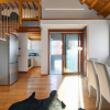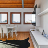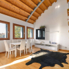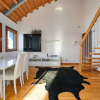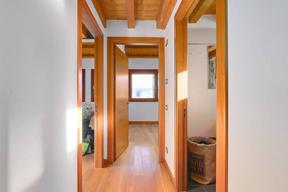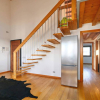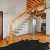 Dal soggiorno si accede, tramite una scala, a un grande soppalco abitabile.