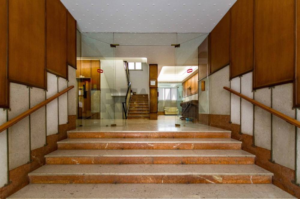 L’ingresso ampio e rappresentativo conduce a un salone doppio, particolarmente luminoso grazie alla presenza di una grande finestra e di un balcone con affaccio su Via Aquileia.