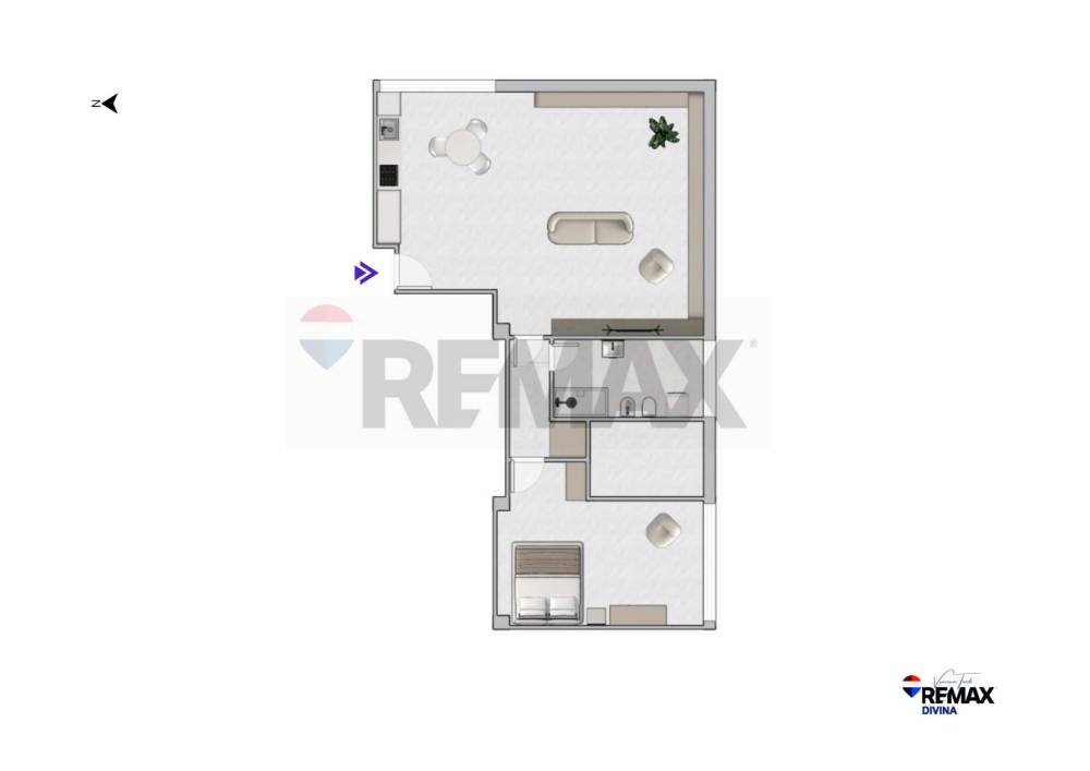 La suddivisione interna del nostro render planimetrico fa capire chiaramente il potenziale di questo prodotto proposto in vendita.