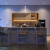 Lingresso introduce alla zona living di grandi dimensioni, con spazioso angolo cottura e ampie vetrate che illuminano naturalmente tutti gli ambienti, creando unatmosfera calda e piacevole.