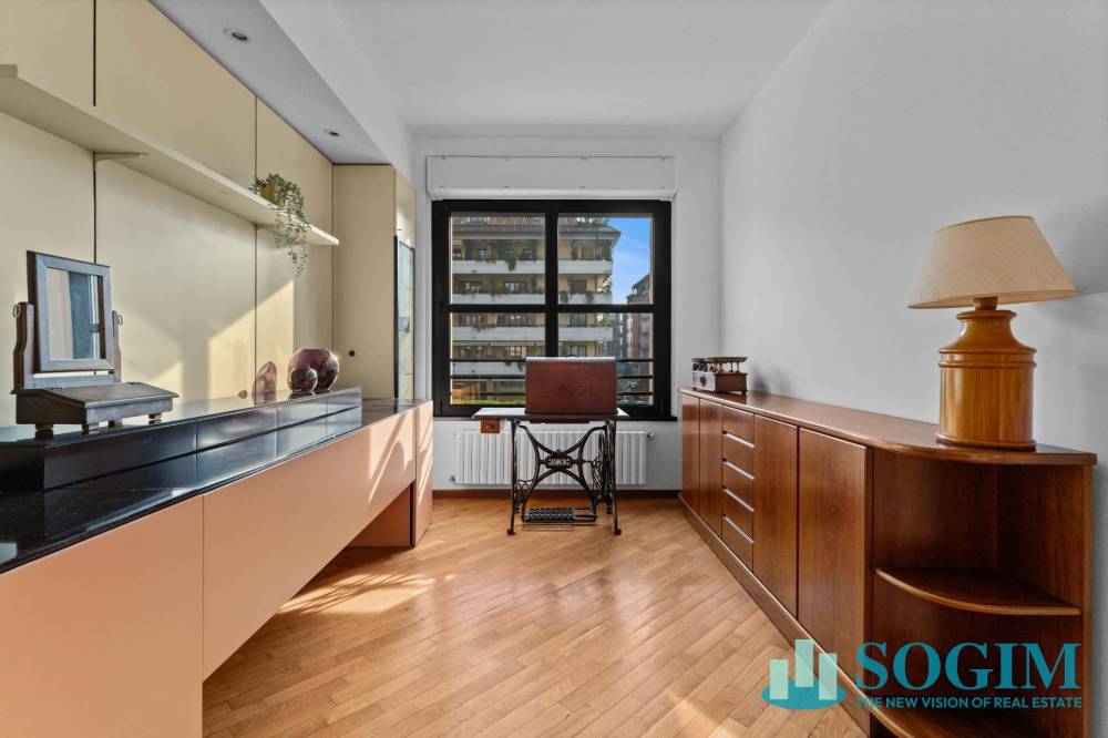 Caratteristiche dell'immobile: pavimentazioni in parquet in tutti i locali ad eccezione dei bagni dove sono posate piastrelle in ceramica; riscaldamento centralizzato, impianto di aria condizionata con split. Gli infissi sono in alluminio con doppio vetro, tapparelle motorizzate.