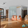 L'ingresso conduce in un ampio e luminoso soggiorno con ampio balcone e cucina abitabile.