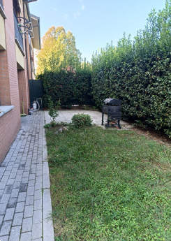 Appartamento al piano terra posto in un complesso plurifamiliare e composto da zona giorno composta da soggiorno con angolo cottura, un disimpegno porta a due camere e al servizio igienico. Da una delle camere si accede ad un locale lavanderia. Dal soggiorno si accede alla corte esclusiva mentre al garage di 28 metri quadri si accede dall'esterno.