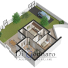 L'appartamento proposto in annuncio è un piano terra con ingresso indipendente composto da zona giorno con angolo cottura, disimpegno, due camere da letto matrimoniali e doppi servizi. Esternamente dispone di un ampio spazio di circa 110 mq tra giardino e aree pavimentate, oltre a area posto auto con accesso carrabile.